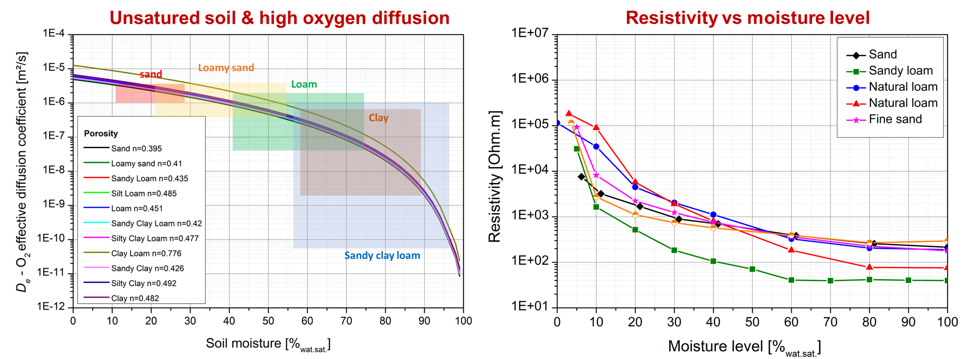 - Corrosion tests in natural or synthetic soils: coupons, mass loss, localised corrosion