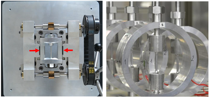 – Statique : montages flexion 3 ou 4 points, éprouvettes en U, C-ring, Anneaux dynamométrique, machines de traction (10T) à charge morte