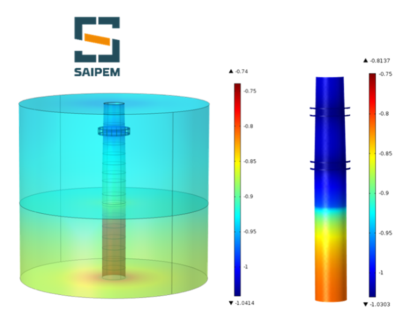 L’Institut de la Corrosion dispose d’une expertise reconnue en modélisation numérique de la protection cathodique, en utilisant des approches par éléments finis (FEM) et par éléments de frontière / surfaces finies (BEM), notamment à l’aide du logiciel COMSOL Multiphysics.
